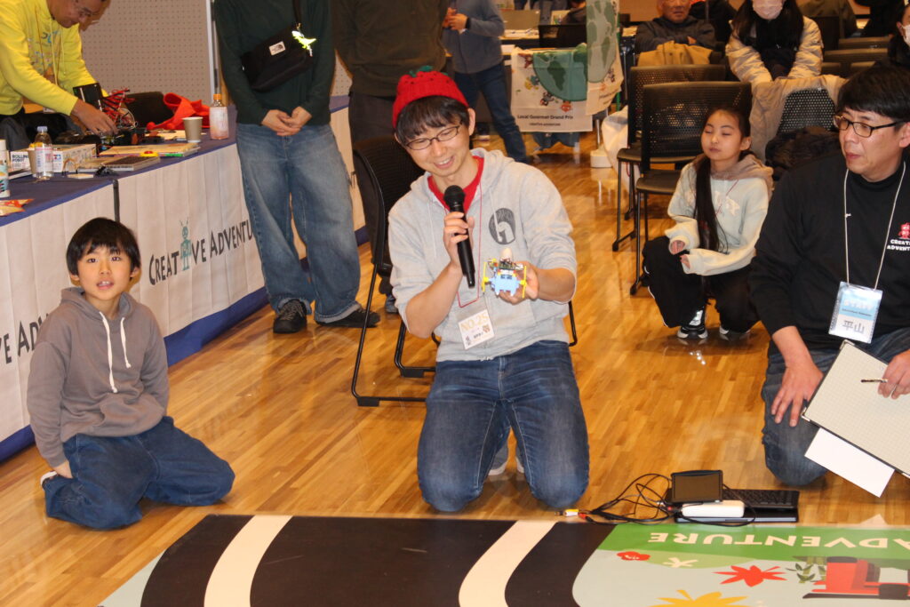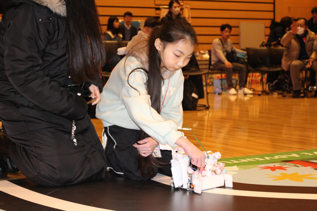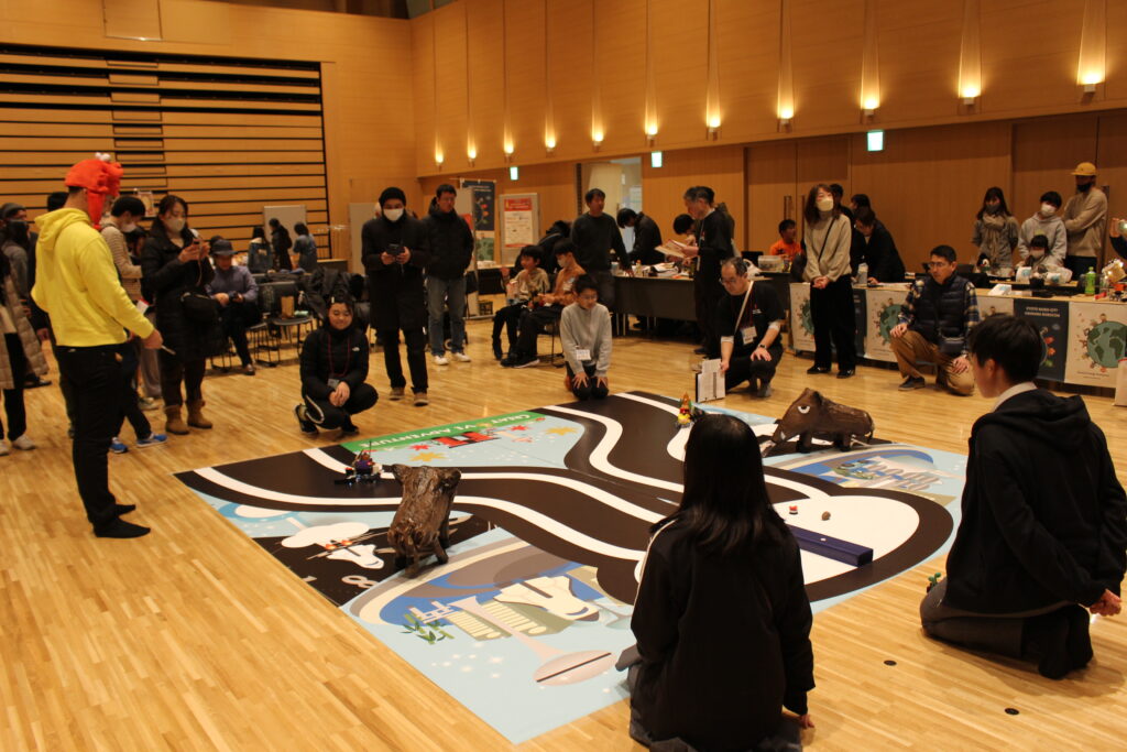 ご当地の特徴をモチーフに小中学生が市販のキットとコンピュータ、センサー等を組み合わせて手作りしたロボットを使ってコースの走行や途中に配意されたアイテムを収集するなど、与えられたミッションに挑戦し得点を競いあうコンテストです。
